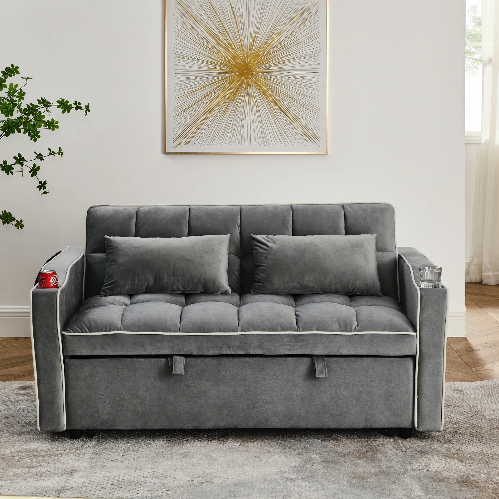 55.51 Inch Versatile Foldable Sofa Bed In 3 Lengths, Modern Sofa Sofa Sofa Velvet Pull-out Bed, Adju